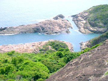 溶岩や火砕流でできた岬の岩場が、波の侵食をうけて十文字形の巨大な亀裂を生じたもの。