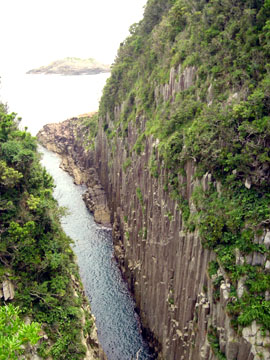 柱状岩なるものが、海水に浸食されてこのような断崖絶壁になったとのこと。