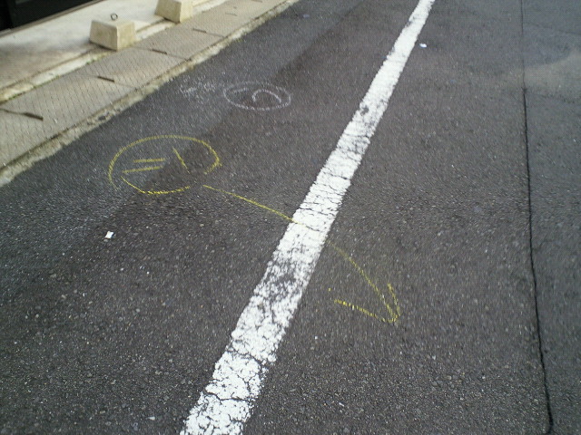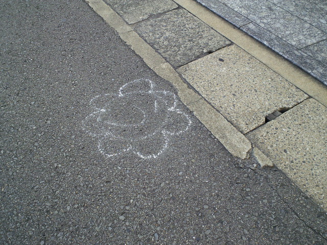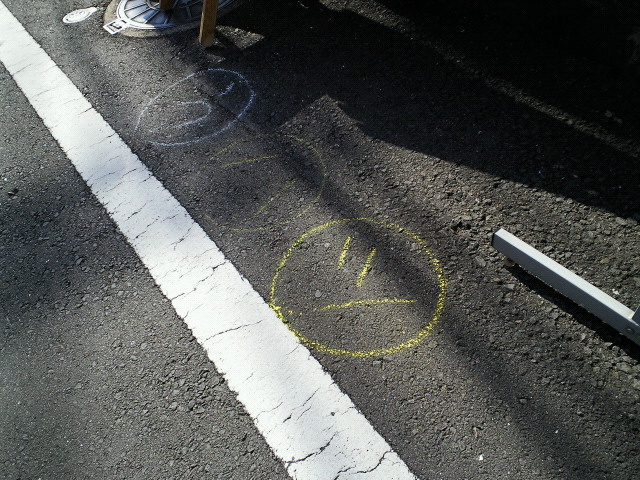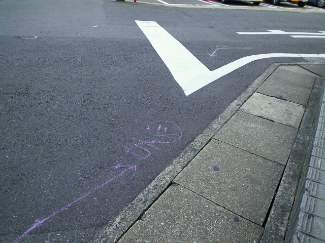 チョークで踊り町のニックネームと、行き先の矢印がかかれているのです。