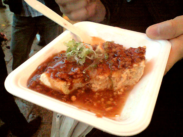 ホカホカのお豆腐に、ピリ辛のマーボーが乗ってます