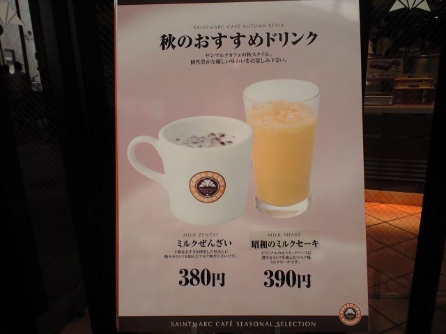 秋のおすすめメニューとして打ち出したミルクセーキに、”昭和の”とつけたあたり、