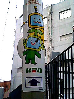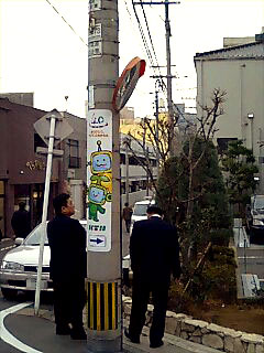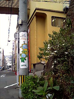 電柱についている看板の中にいる、黄色い方がけーたん。