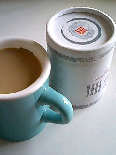 カップの脇にはなぜか中国で購入した”ジャスミン茶”の茶筒が。